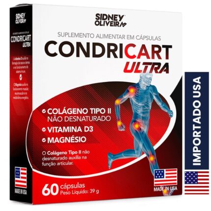 Modo de Uso Condricart Ultra Made in USA 60 cápsulas Sidney Oliveira. Condricart Ultra é um suplemento alimentar com 40 mg de colágeno de frango que equivale a 6 mg de colágeno tipo II não desnaturado, Magnésio e Vita