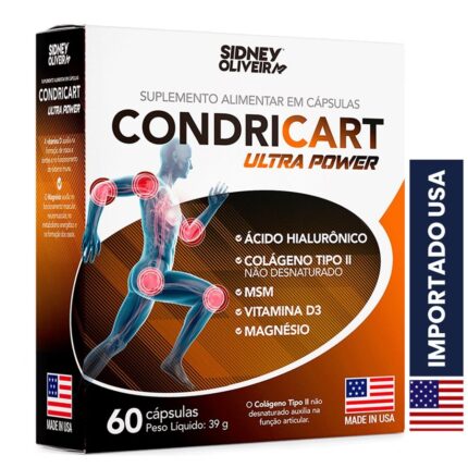 Modo de Uso Condricart Ultra Power 60 cápsulas Made in USA Sidney Oliveira. Condricart Ultra Power é um suplemento alimentar com 40 mg de colágeno de frango que equivale a 6 mg Colágeno tipo II não desnaturado, Ácido