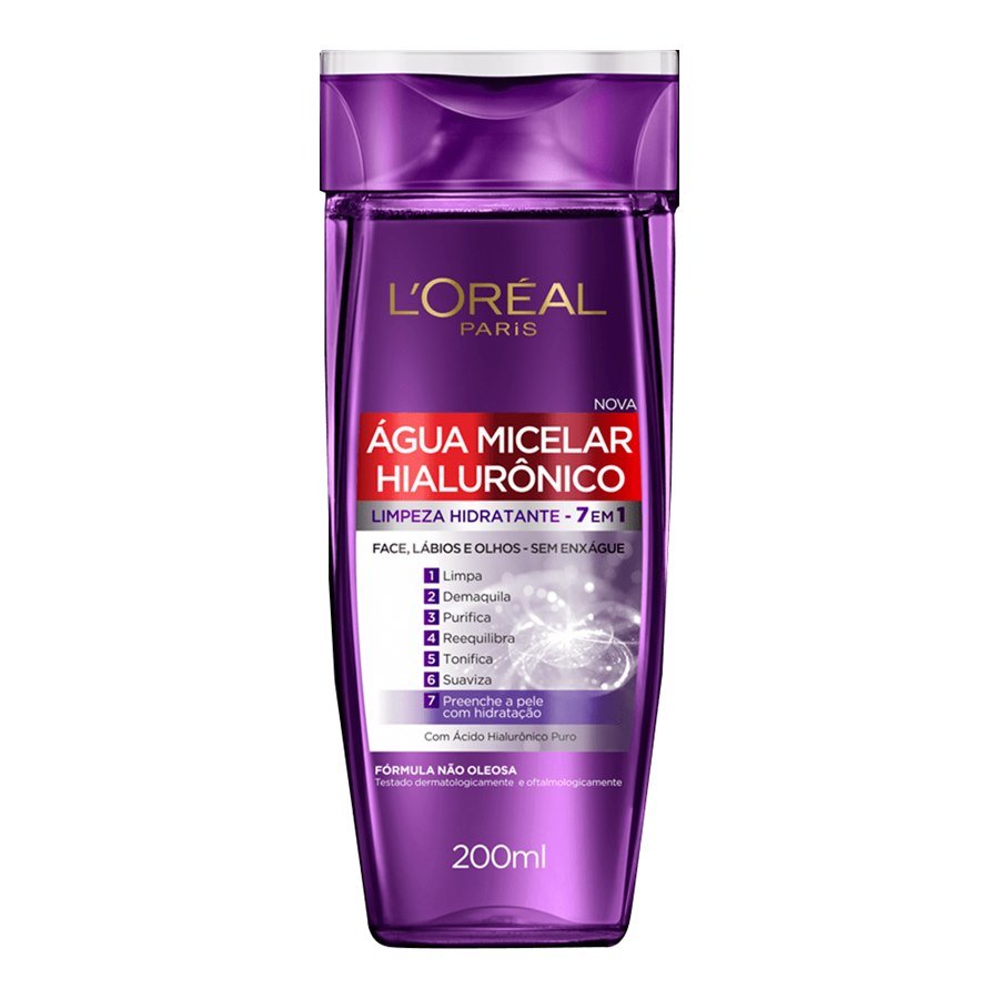 A ÁGUA MICELAR HIALURÔNICO DA L’ORÉAL Paris é uma solução de limpeza facial com múltiplos benefícios eficazes para a sua pele: limpa, demaquila, purifica, reequilibra, tonifica, suaviza e preenche a pele com hidrataçã