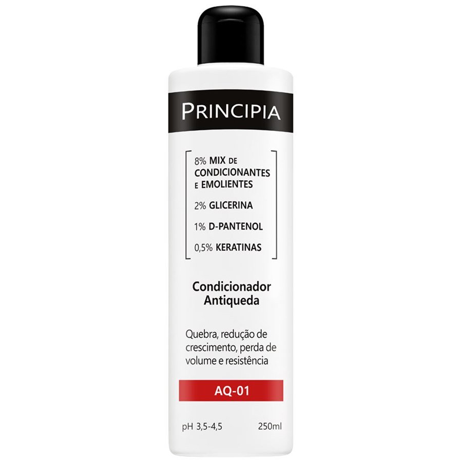Modo de Uso O condicionador antiqueda AQ-01 da Principia foi desenvolvido para fortalecer os fios, reduzir a quebra e ajudar no crescimento saudável do cabelo. Sua fórmula contém ativos como glicerina, D-pantenol e que